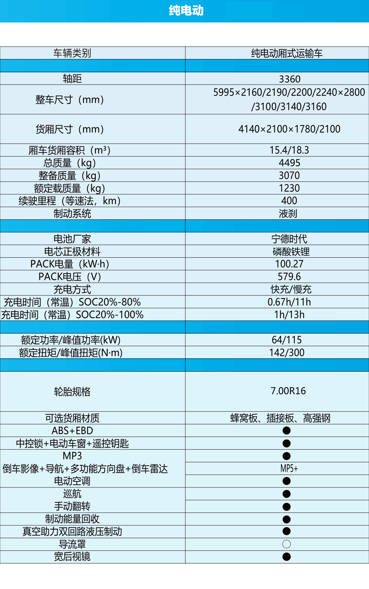 核心品牌动力电池品牌+理工华创多合一控制器+五十铃技术后桥+福田自主整车控制系统的黄金动力链匹配,保证整车澎湃动力的同时,实现整车能耗最低,有效提高车辆续航里程
